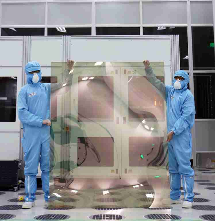 森林舞会昆山厂第六代 LTPS (低温多晶硅) 生产的玻璃基板尺寸为 1500x1850 mm (毫米)